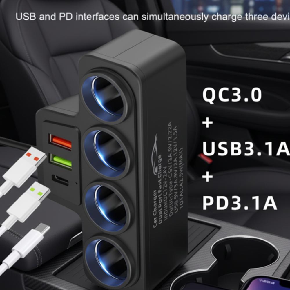 3 مقبس USB QC3.0 + PD 3.1A 3 منافذ USB شاحن سريع التوصيل 4-مقبس محول طاقة الهاتف سيارة ولاعة السجائر المقبس الفاصل التوصيل